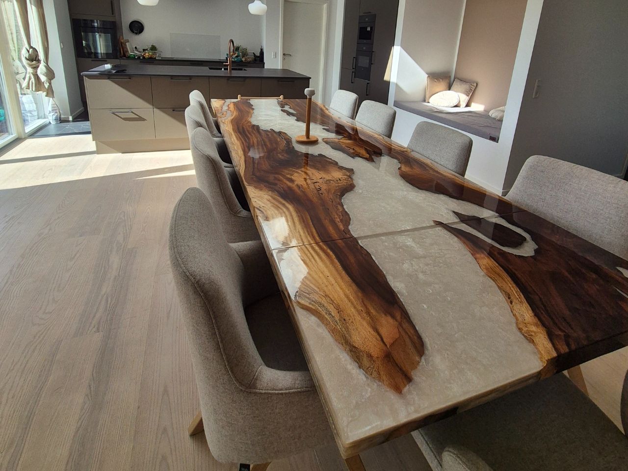 Fantastisk service! Glemte helt at tilføje ben til min ordre, men de ringede straks og fik det fixet. De tilbød endda at levere og sætte det op. Mega god service! Bestilte i lørdags og allerede mandag var det her. Tog chancen med billederne, men det er meget mere lækkert i virkeligheden! Og jeg er virkelig glad for, at jeg ikke skulle slæbe det epoxy spisebord selv 🙂