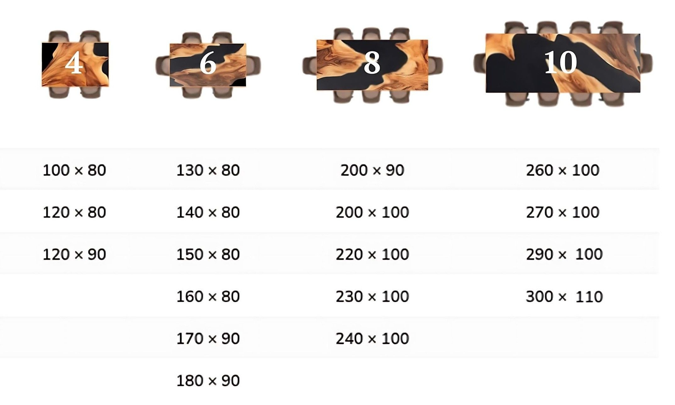 Ved epoxy/river tables placeres de lyse kanter ofte ind mod midten, hvilket giver en eftertragtet og unik kontrast.